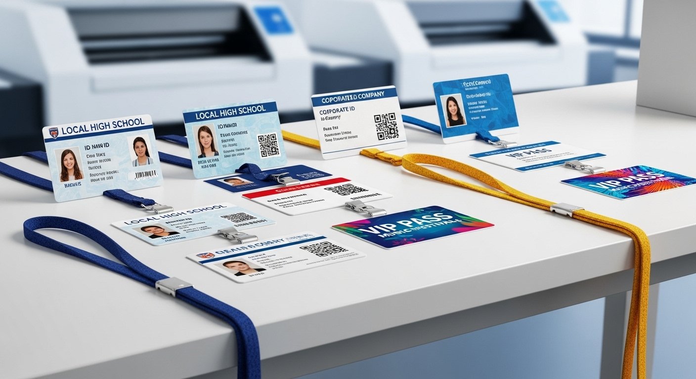 Premium quality PVC cards, School ID cards, Corporate setups, and custom Lanyards printed in bulk.